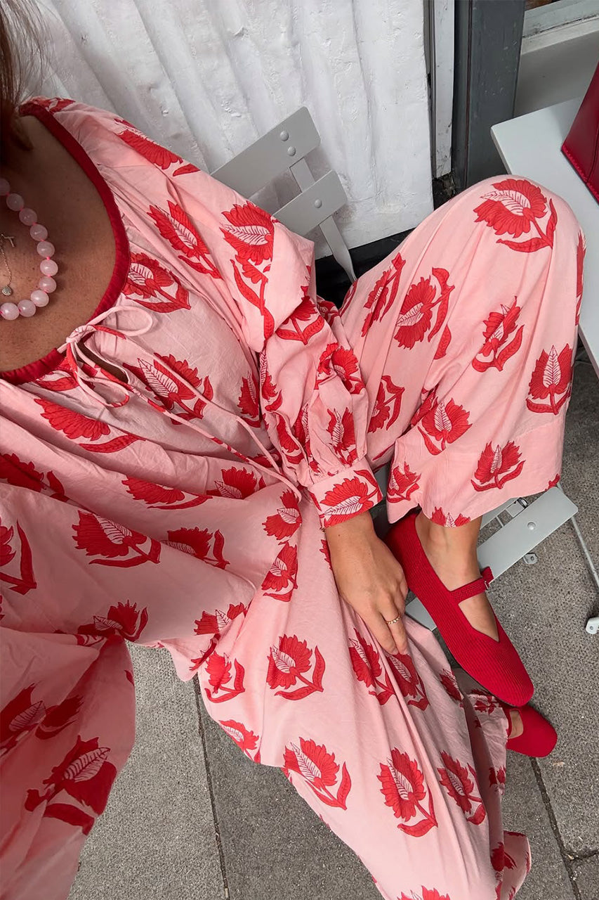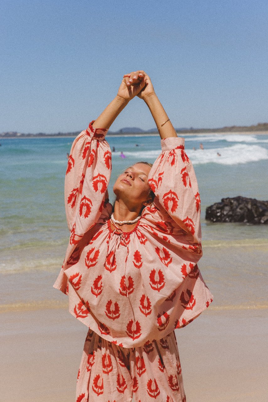 This blouse is beautiful. The colour is exactly as shown and the fabric is so light. I am a good size 16 and ordered a Medium in Cherry Blossom but could have possibly sized down to a small. The sleeves are a fraction too long and the neck is a little wide. I need to gather it as much as possible to feel comfortable. Nevertheless it is a lovely top.